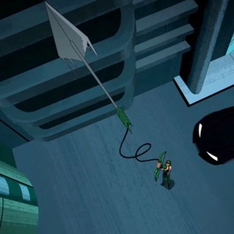 Similarly, arrows can grip an object for it to be reeled in. When the line is shot and lodged horizontally, Green Arrow can slide on it from building to building, and the line can also be used to trip a fugitive and tie them up. A particularly complicated arrangement is where multiple pulleys and lines are shot into an overhead girder to enable a heavy weight to be lifted. Despite all these skills, the Joker dismisses Green Arrow as a "trick shooter".