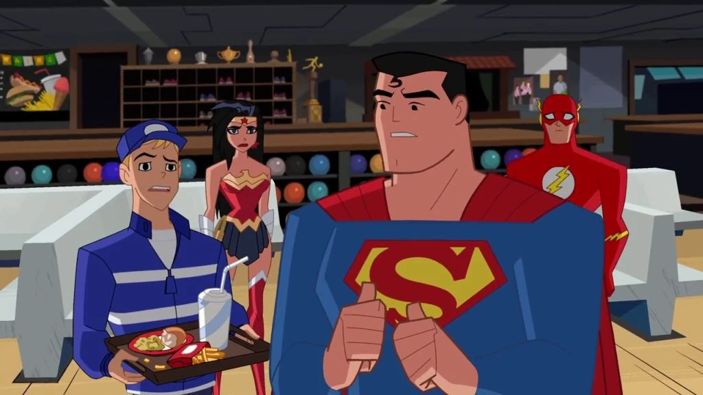 - One of the storyboard artists, Jay Baker, has posted images and animated clips with sound of the bowling alley scene from an early production stage of this episode. It was originally intended to be a scene from the Best Day Ever episode that included Green Arrow and Hawkman.