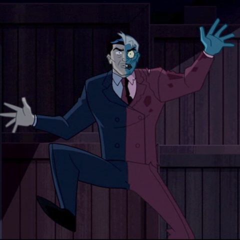 - This version of Two-Face talks to himself (one is good/one is bad) which he constantly argues to each other, this might be because of his split personality.