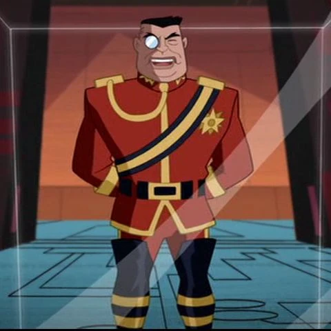 Virman Vundabar is seen as short and stocky with his dark hair cropped at the back in a military style. His face has a slight double chin and he wears a monocle over his right eye and squints with the other. He wears a red army jacket and red pants with long boots to give him the overall look of a Prussian officer. He announces himself loudly, speaking in a Germanic accent and mocking others with mad laughter.